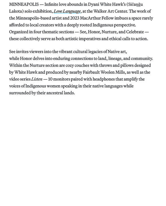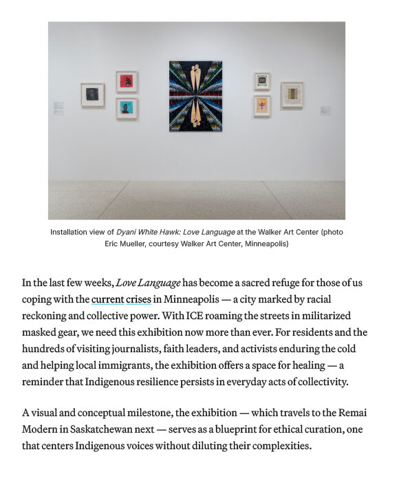 For Dyani White Hawk, Love is an Act of Resistance; by Sheila Dickinson for Hyperallergic